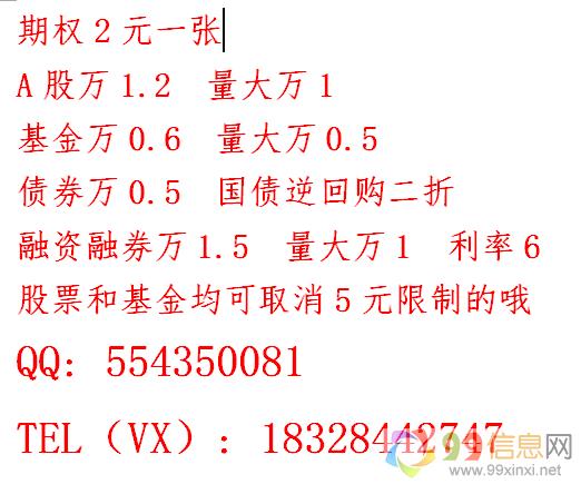 3.融资融券佣金万1.5,量大万1,融资利率6(目前很多券商没有券-源,不能做融-9_9_信_息_网券,我们公司可以做融-券的哦!)
